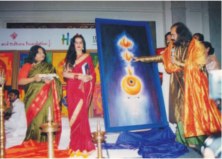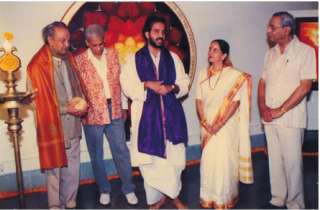 UG with his parents and Mr. Shailesh Haribhakti, Chairman of MentorCap Management, inaugurating ‘The Sun - In Human Civilisation’ exhibition at Nehru Centre Art Gallery, Mumbai.