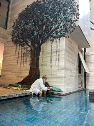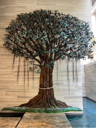 Banyan Tree - My very 1st copper sculpture design with 5000 hand crafted leaves weighing 500 kilograms. 21 feet tall. Installed on the auspicious day of GURUPOORNIMA.